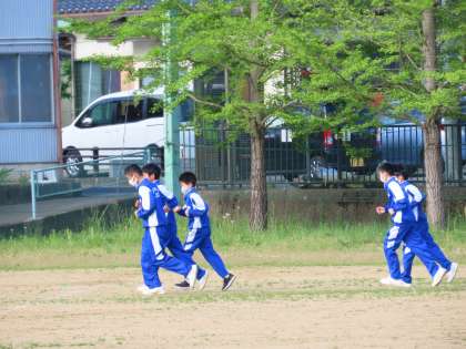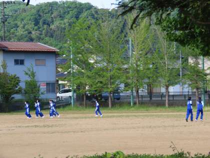 朝練開始。まずは、女の集団が、そして男子が次々に。ジョッグ。