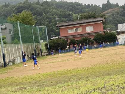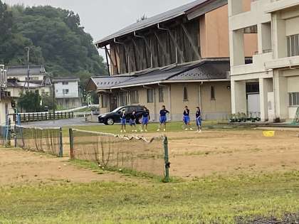小雨の中、ソフトテニス部。