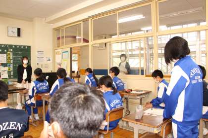 生徒達も興味津々で聞いていました。生徒代表によるあいさつでは、全員が起立をして感謝のあいさつをしました。お忙しい中来校いただき、生命の大切さについてのお話をしていただき、ありがとうございました。