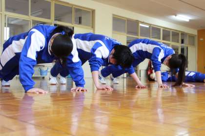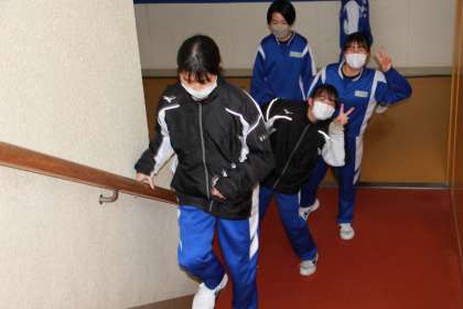 ソフトテニス部女子から。階段の昇降運動と筋トレを行っていました。