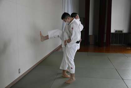講道館の感染防止策を徹底し、組み合う練習はできるだけ短時間にとどめます。