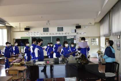 1年2組 音楽 よい発声は、よい姿勢から。