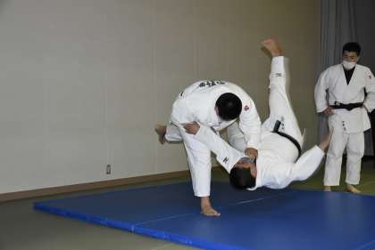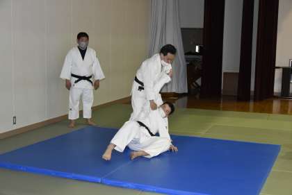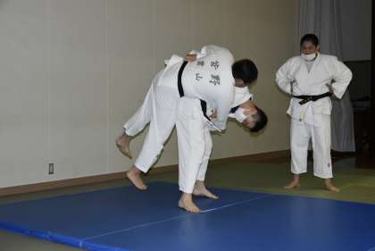 柔道部の稽古には校長先生が参加していました。