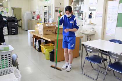 職員室と職員室前の廊下の清掃です。職員室のシュレッダーのごみは大量且つ細かくて,集めるのが大変ですが、ていねいに行っていました。