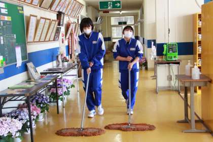 今年度の清掃の様子をお伝えします。校舎1階の様子から。