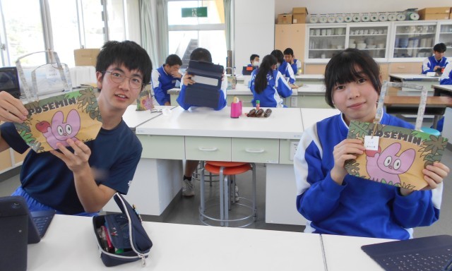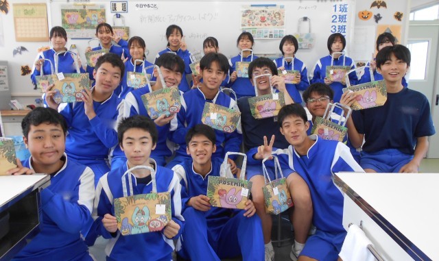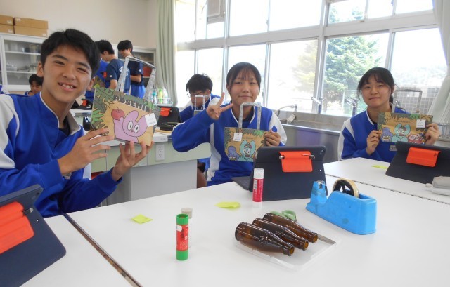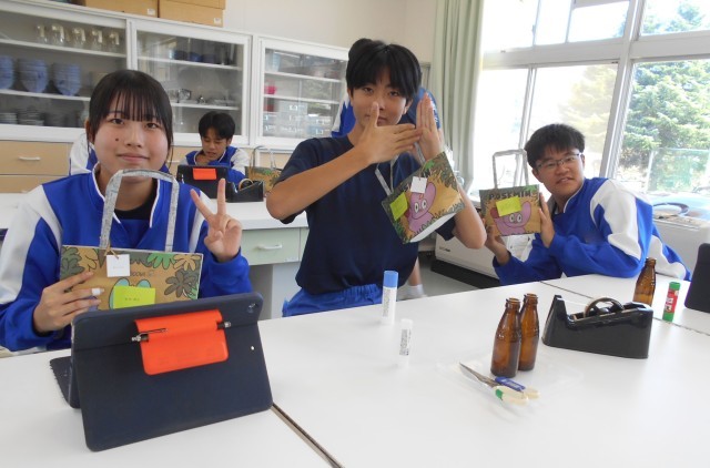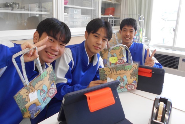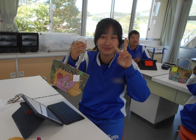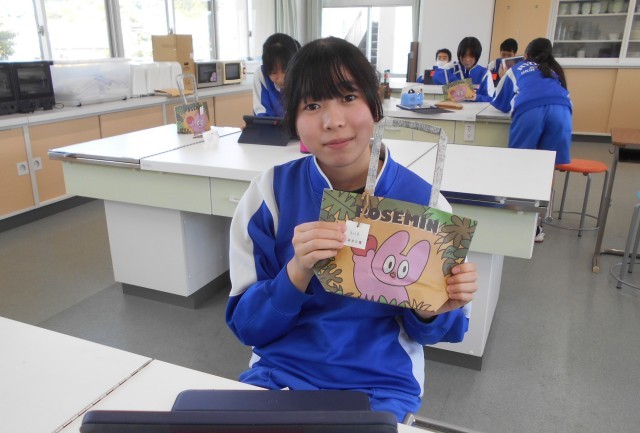 3年家庭科では、SDGSの学習と絡めて、新聞を使ったエコバックづくりを行いました。