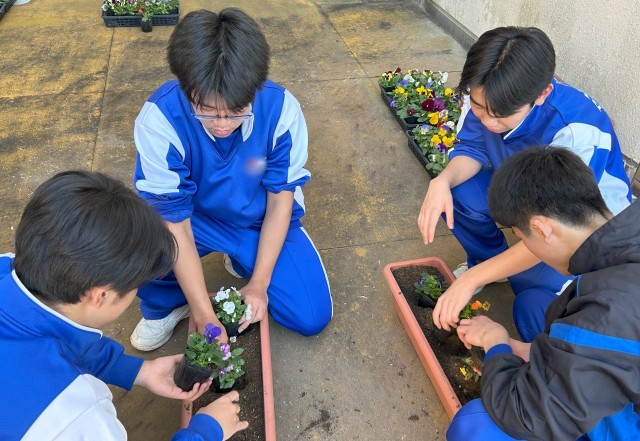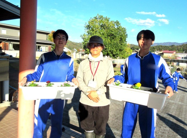 1年生は霊山児童館へ、2年生は霊山体育館と亀岡神社へ、3年生は校地内、学校周辺の道路へ出かけ、主に清掃活動を行いました。3年生のチームの1つは、プランターに花を植えて近隣の施設へプレゼントしました、