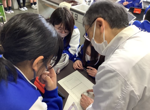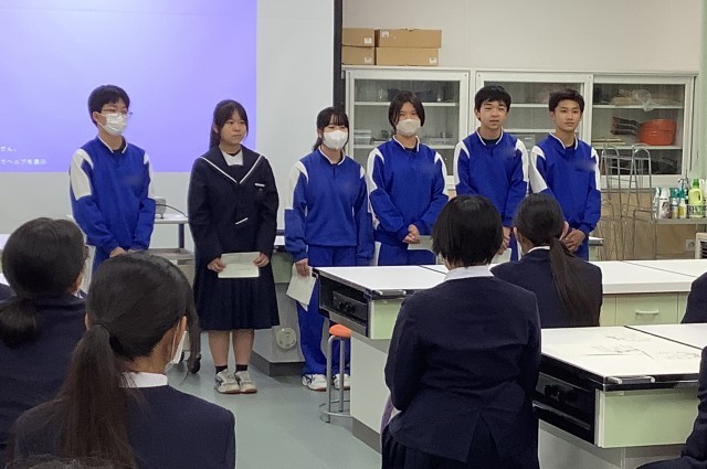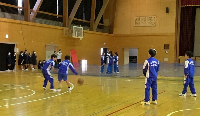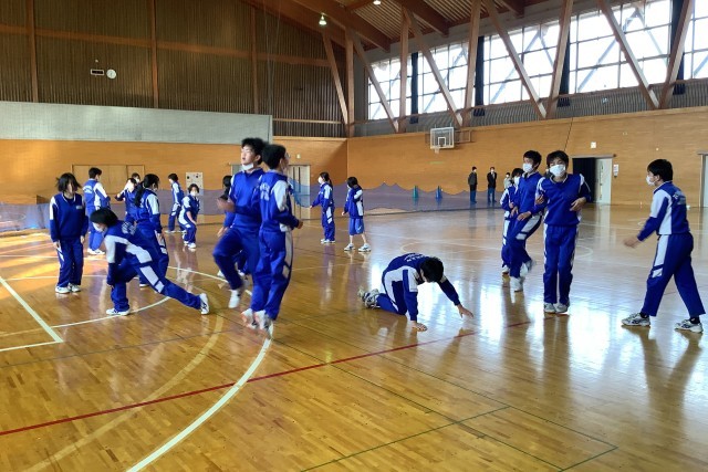 日程確認の後、3つの班に分かれ、5時間目の授業の様子を見て回りました。こちらは、2年生の保健体育の授業の様子です。