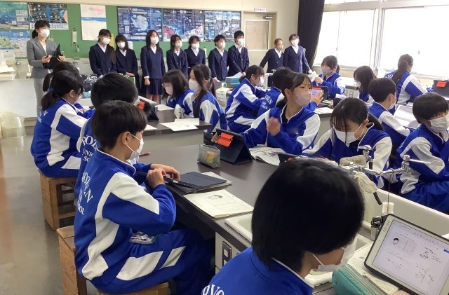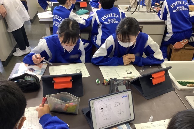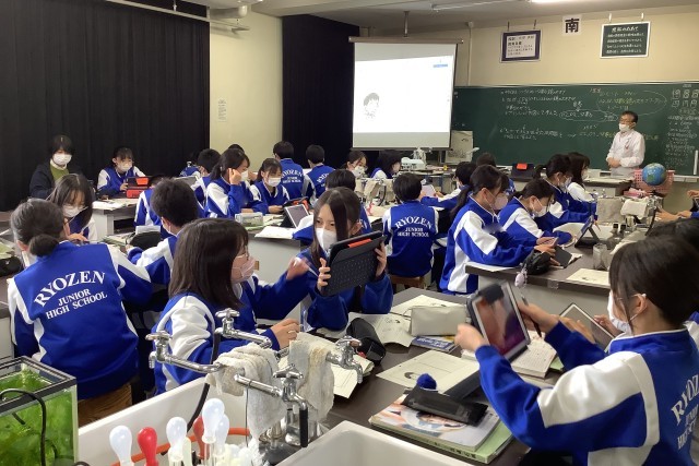 こちらは、1年生の理科の授業の様子です。光の進み方について学習しています。
