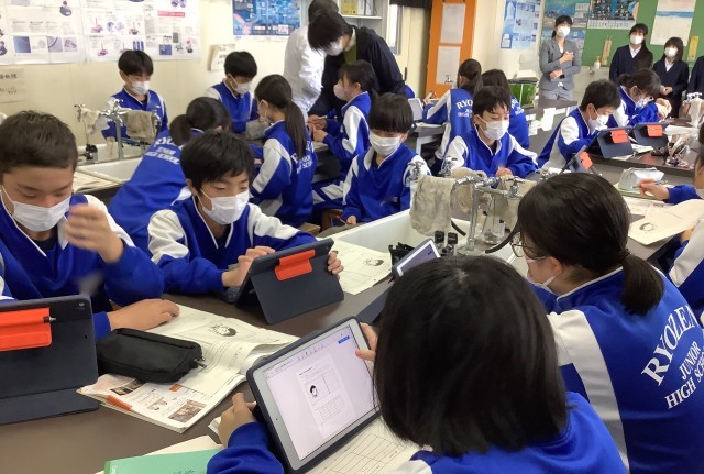 ペアになり、1人が演奏し、もう1人が演奏の様子をタブレットで動画を撮影します。演奏後に動画を見て振り返ります。