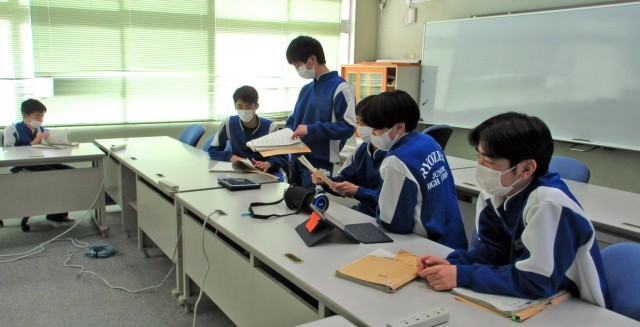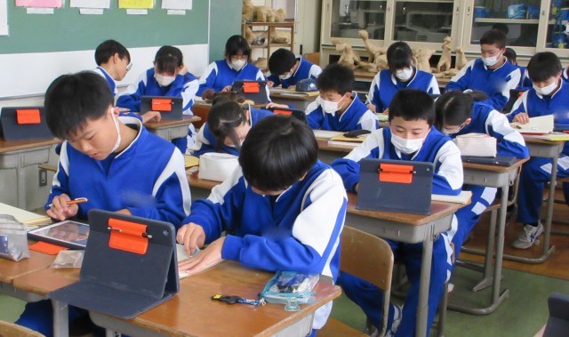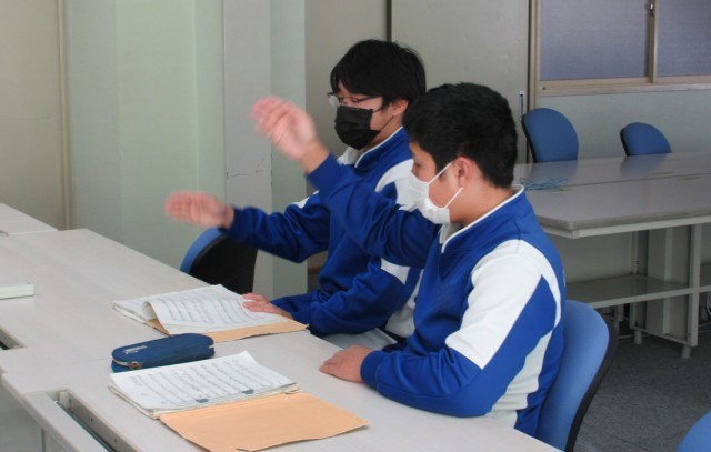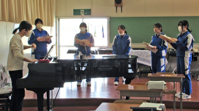 卒業式に向けて合唱の練習をしているようです。パート練習をしています。