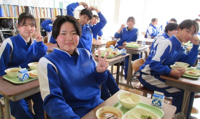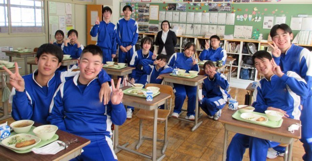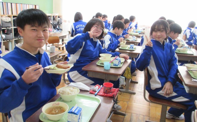 3年生は今日も1日中テストで、給食の時間が束の間の休息です。