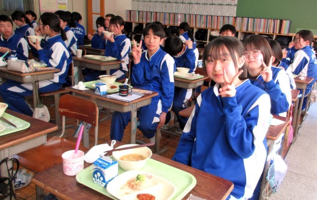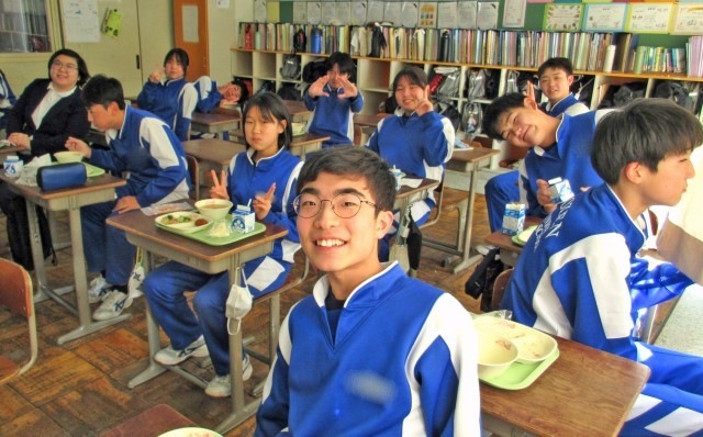 3年生は今日も1日中テストで、給食の時間が束の間の休息です。