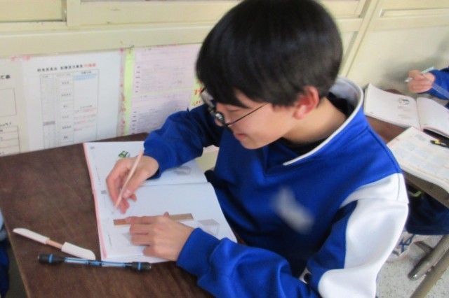 3年家庭科では、「生活を豊かにする工夫」をテーマにティッシュケース作りに挑戦しています。
