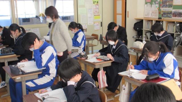 3年生は、県立高校Web出願に向けて、手順の確認をしていました。県立高校も令和8年度入試から紙での出願を廃止し、Web上での出願となりました。制度変更後初めての出願となるため、特に慎重に準備を進めていきます。