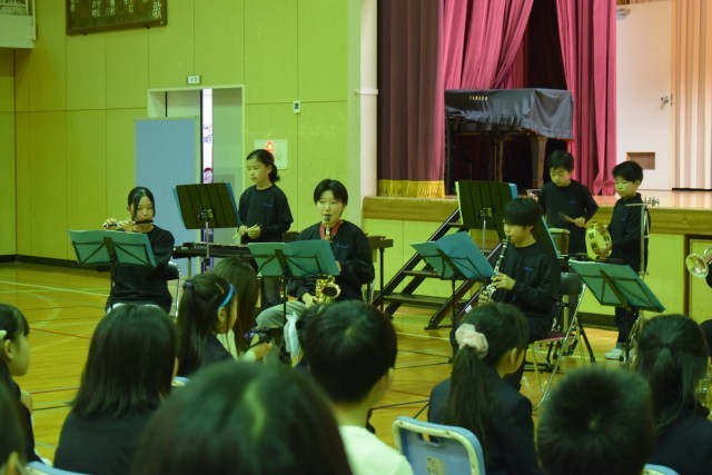 開会セレモニー前半は、実行委員長と校長先生の挨拶の後、吹奏楽部の発表です。