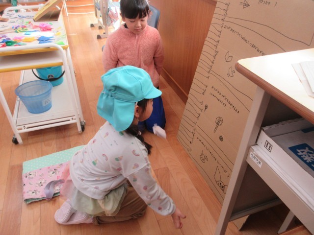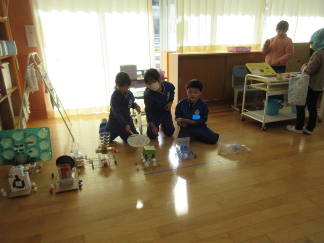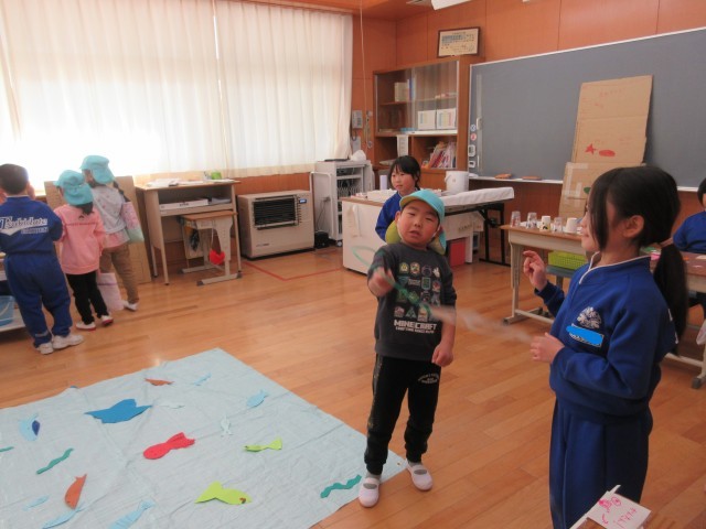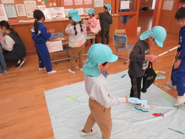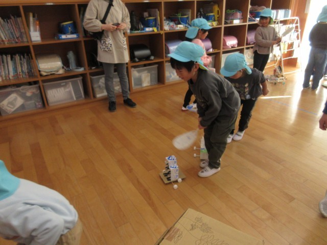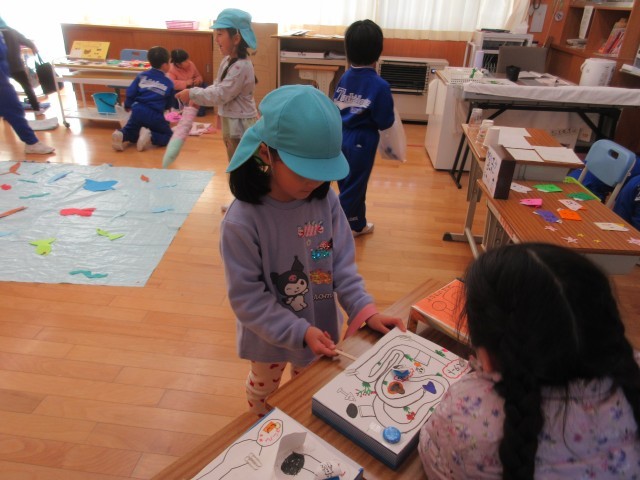 2年生の生活科の授業で「うごくおもちゃ」をつくりました。つくるからには、こども園の年長さんと1年生を招待したいという意見がでたので、「おもちゃ祭り」を行うことにしました。今日は、楽しみにしていた「おもちゃ祭り」当日!!2年生は、ちょっぴり緊張しながらも、頑張っていました♪みんな楽しんでくれたようなので、大成功でした!!