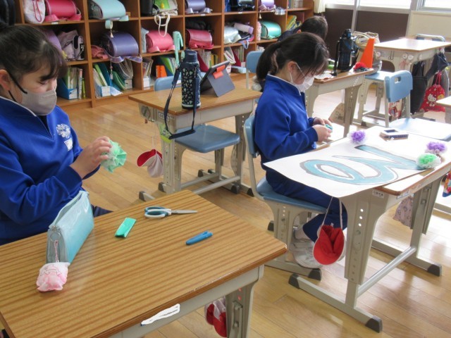 4、5年生は6年生ありがとうの会の準備、そして6年生教室では卒業式に向けた歌の練習が行われていました。