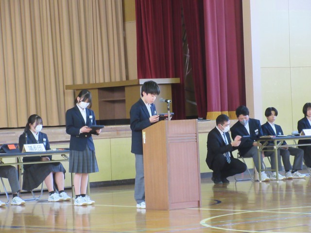 本日、生徒総会が行われ、1年間の活動を振り返るとともに、各委員会からの報告がありました。