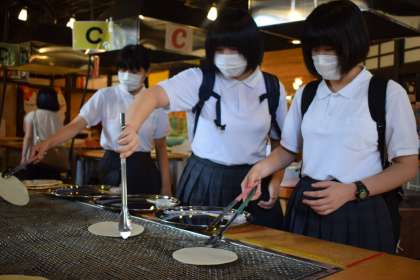 新潟せんべい王国に到着し、せんべいお絵かき体験をしました。