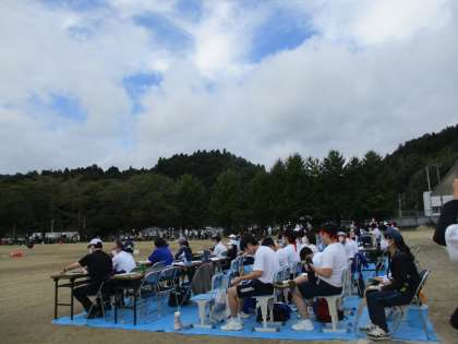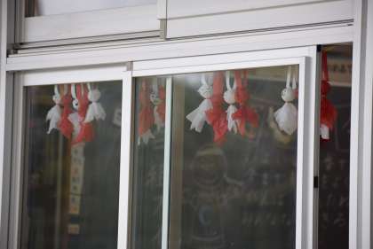 雨が降らないようにと願って、子どもたちが作った紅白のてるてる坊主が下げられている教室がありました。一昨晩の大雨・洪水警報、大雨ではないながらも昨晩の雨が降った中での今日のお天気は、きっとこのてるてる坊主様のお陰ですね。途中からは青空が見えてきました。