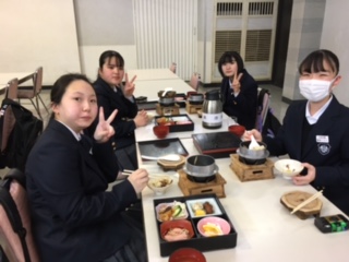今、2年生は、よねおり観光センターで美味しい昼食を食べています。美味しい顔をご覧ください。