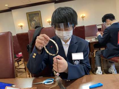 ブリティッシュヒル昼食昼食の前に、ドリームキャッチャーが完成したようです。