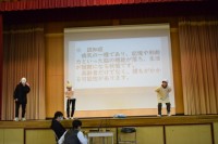 中学校1年生による総合発表「今日、高齢者になりました」中学校1年生は福祉学習や、...