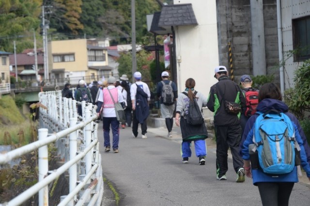 また、雨上がりのためか空気がとても澄んでいました。歩きながら見える山々の紅葉が目の前に広がり、鮮やかに映えていることから写真におさめる参加者も多くいらっしゃいました。休憩場所もスタンプラリーの押印場所として適切に設けられており、十六羅漢像や赤木神社では詳細な説明を聞くことができ、大変勉強になりました。