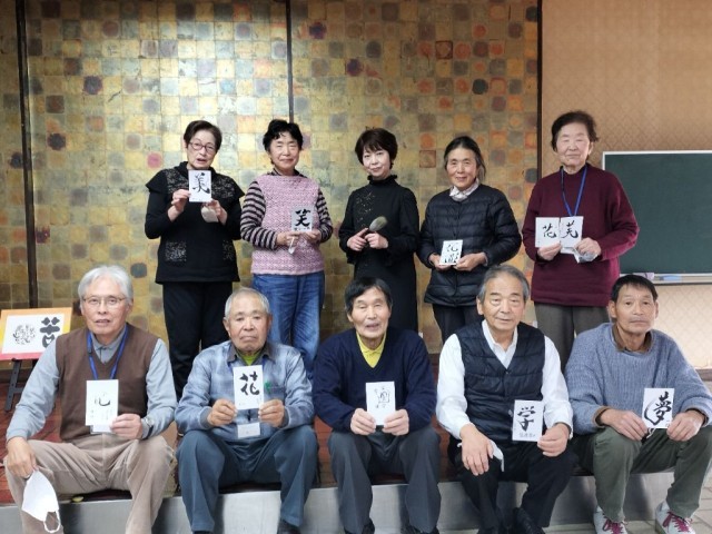 12月に入り、今年一年を振り返る機会が多くなりました。ほばら市民大学でも、12月はご自身の今年一年を振り返り、漢字一文字をデザイン書道で書いてみました。講師の岸波先生のご指導の下、一人ひとり思いのままに筆を走らせ素晴らしい作品が完成しました。
