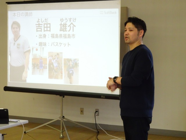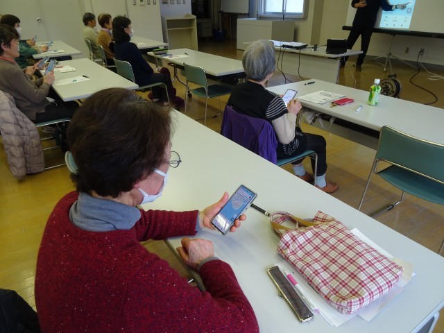 今回もソフトバンク・スマホアドバイザーの吉田雄介様をお迎えしての「スマホ体験教室」です。月舘成人講座では、3年前からソフトバンクのスマホ体験教室を開催しています。受講生は年を追うごとにスマホの扱いに慣れてきており、LINEの音声入力やスタンプ、写真の送信などが、1回の説明だけでできる人が多くなりました。スマホを持っている受講生も持っていない受講生も楽しんで学習会に参加することができました。